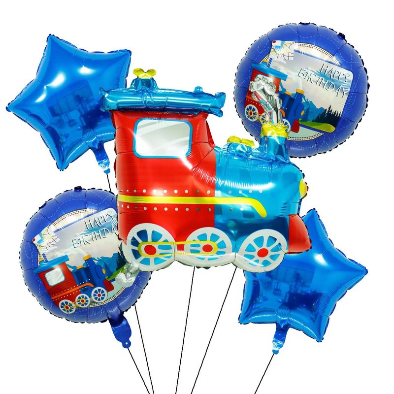 GOTPASS 5PCS Jumbo Blue Train Foil Balloons Set Train Themed Party Supplies Baby Shower Boy Birthday Party Decor