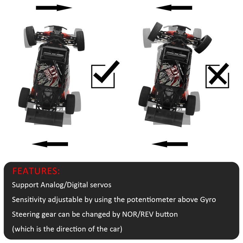 - Sensitivity Adjust :Sensitivity adjustable and direction changeable, Automatic Stability Control RC Gyro
