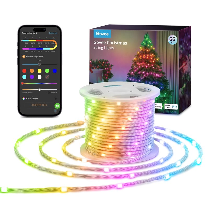 Govee 66ft String Lights, Smart RGBIC Rope Lights Indoor with 99+ Preset Scene Modes, IP65 Waterproof Christmas LED Lights Outdoor, Sync with Music, Works with Alexa, Holiday Home Party Decoration