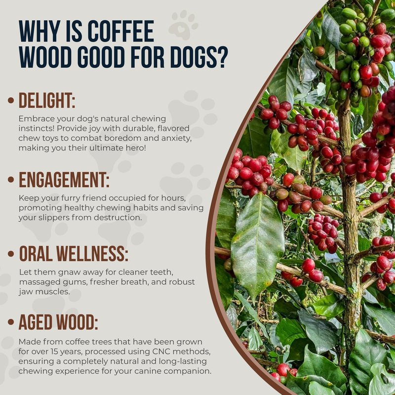 - IMPORTANT PRODUCT INFORMATION: Great for regular chewers, but not suitable for aggressive chewers because this is a natural product and has a certain softness. Natural coffee wood has a slight softness that makes it easy for your dog to chew. While chewing, small pieces may come off. Initially soft, these pieces can harden as they dry. For your dog's safety, regularly check and remove any hardened splinters. This natural characteristic of coffee wood does not affect the product's quality. Thank you for considering this when selecting our product.