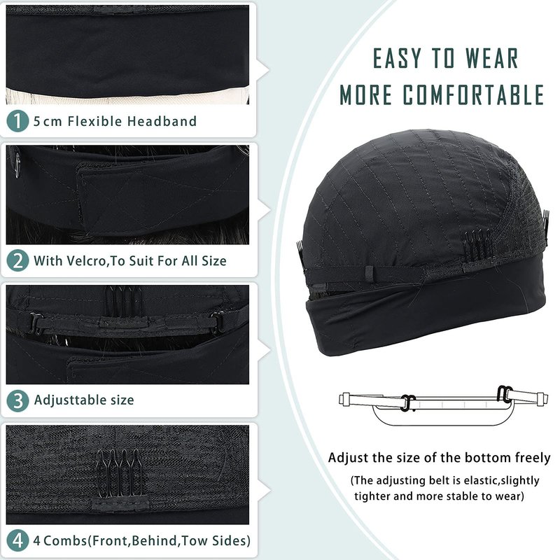 - 【Feature】The short headband wig is 10 inches to 12inch, color is natural black,Wig cap size:medium cap(21.5"-22.5") available with 1 adjustable velcro snapping and 4 combs inside,you also can adjust the velcro according to your head size.