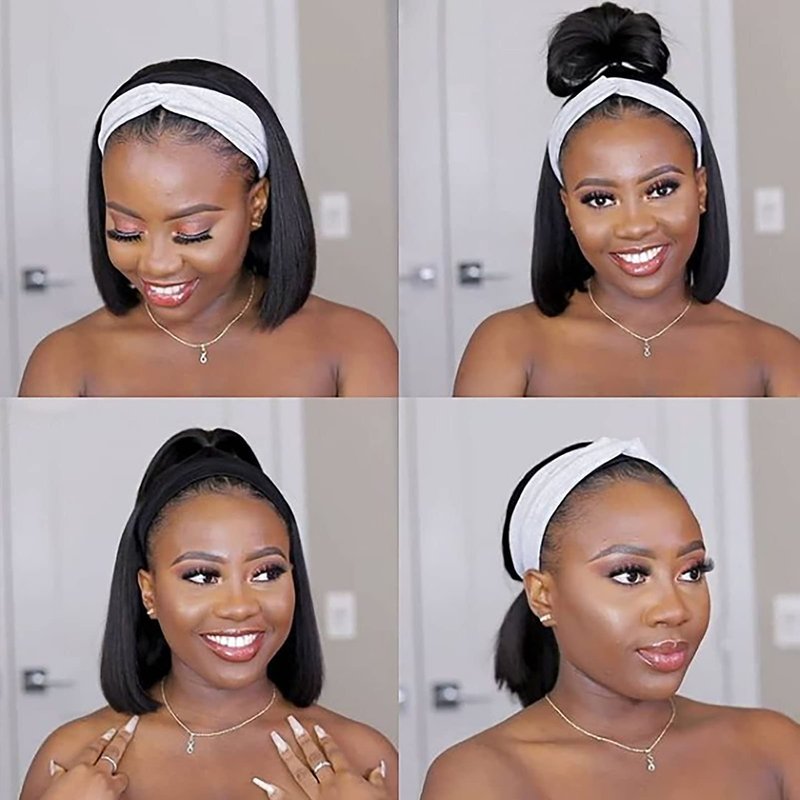 headband wig, headband wigs for black women, headband wig human hair, bob headband wig, bob wig, straight wig, short wig