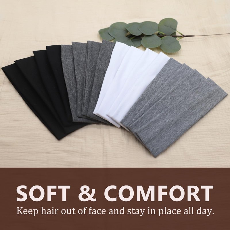 Gowpug Headbands for Women 16 Pack Non Slip Hair Bands for Women's Hair Elastic Cloth Headbands Soft Stretchy Cotton Headband for Workout Yoga Sports (Black,White,Gray Dark,Gray)