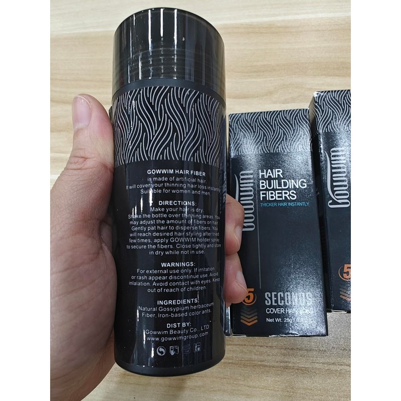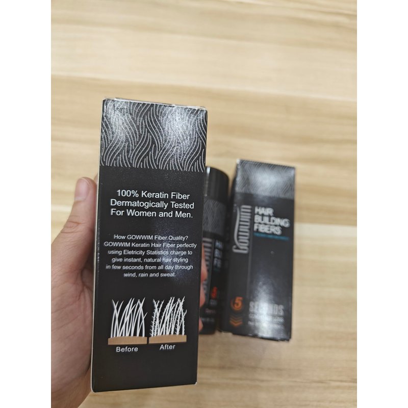 - A New Generation--Hair Thickening Fibers, compared with other brands of hair building fibers, our products are more real, 100% will not be found by others, gowwim will not have any color deviation with your hair. production technology in the field of cosmetics, and is highly favored by the consumer market.