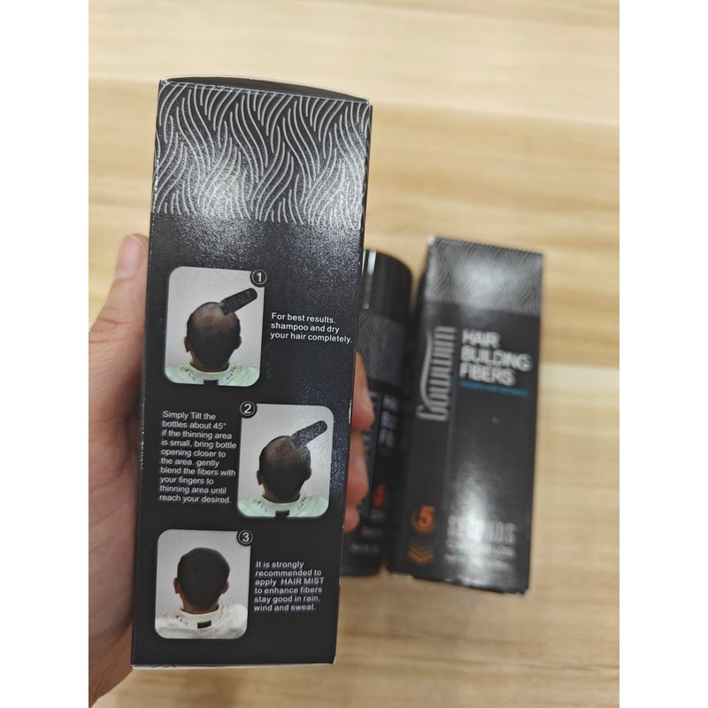 - Hair Loss Concealer--Easy to use,after washing and drying the hair, shake it gently with the bottle (about 12 cm away), cover it on thinning hair and rub gently with your fingers to allow the vegetable protein fibers to adhere evenly every hair.