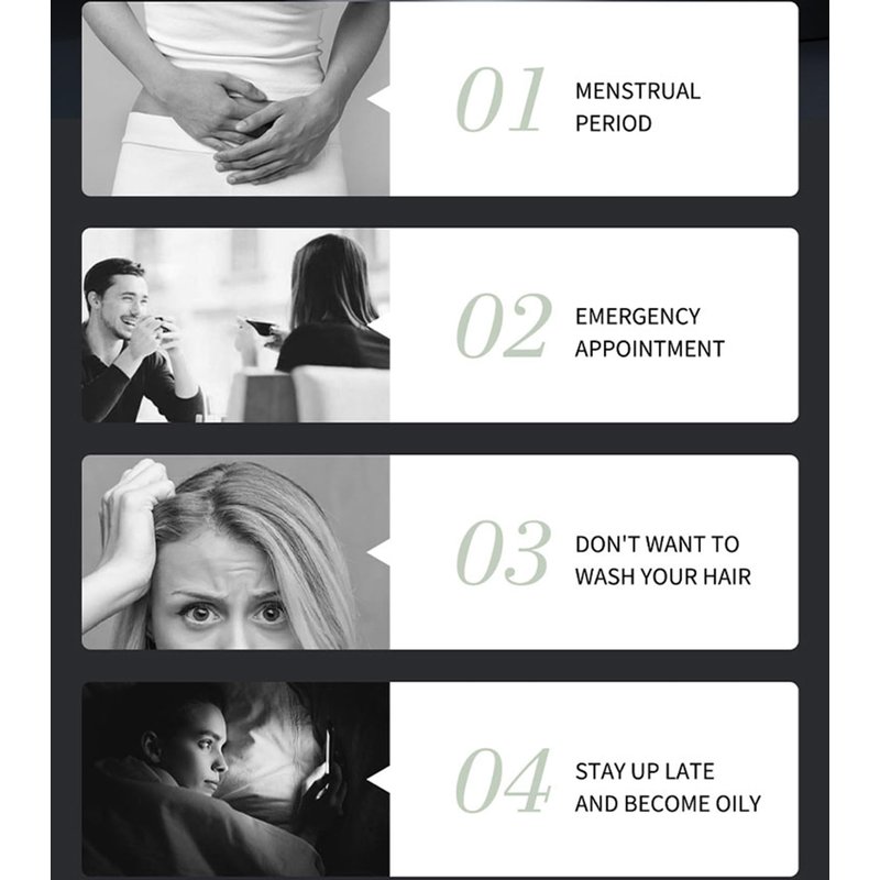 After washing and blow-drying your head, apply at the root on dry hair for instant lift,spray on the hair for lightweight texture,control.Fluffy or curly hair can be reshaped and restored.