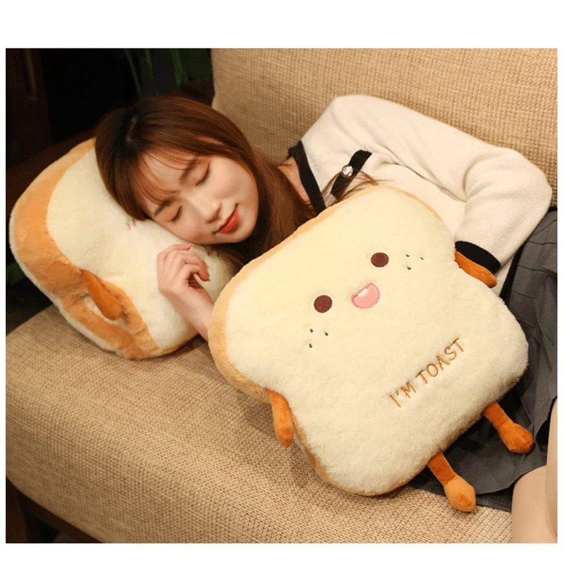 - Toast Bread Plush Design -- Imagine that your favorite bread have become plush toys or pillows. Different styles with different face.At the same time, as a decoration, maybe it can also show your feeling.Super soft and cute, and will add color to life.When you look at it with a smile on it and hold them, you will feel relaxing in yourself.