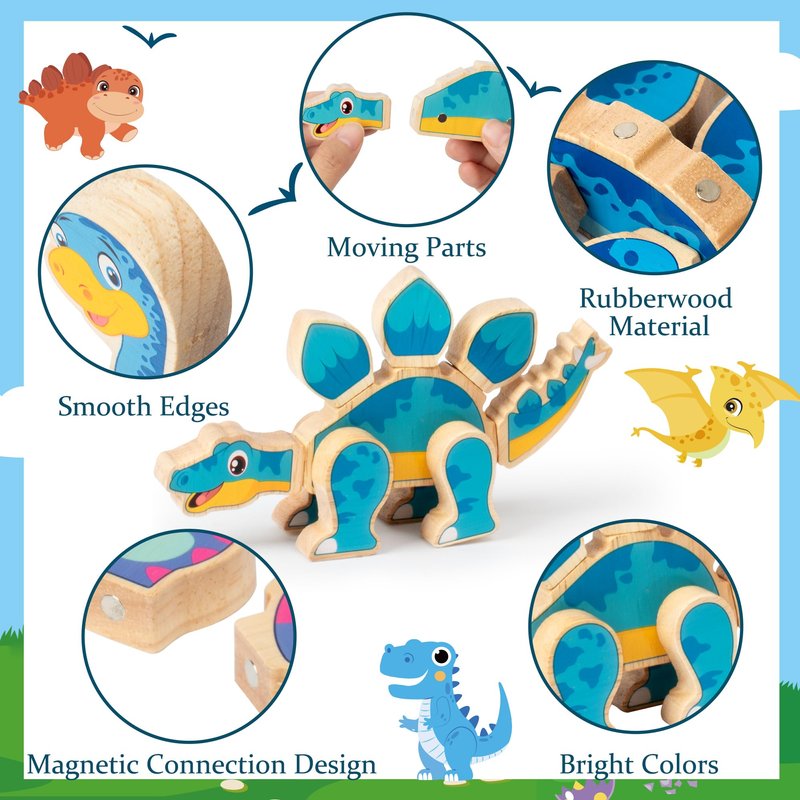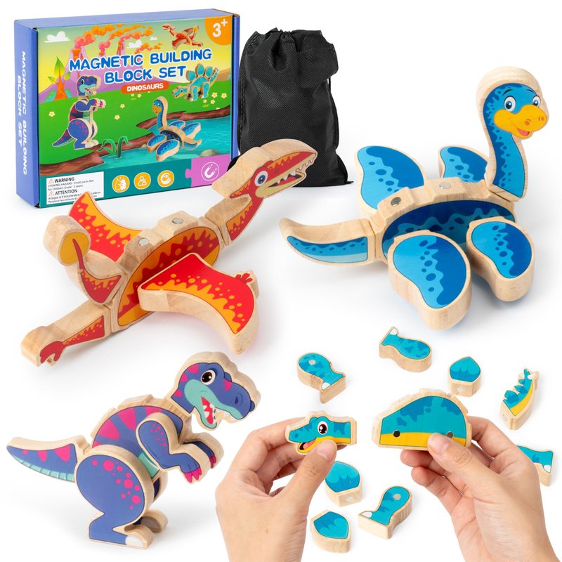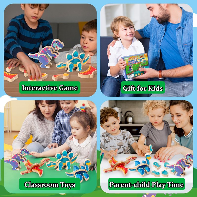 - Reliable Material: These dinosaur world building toys are made of reliable wood, with smooth surfaces and splinter-free corners, and the wooden pieces contain magnets, which can be magnetized when gently put together to ensure your child's safety.