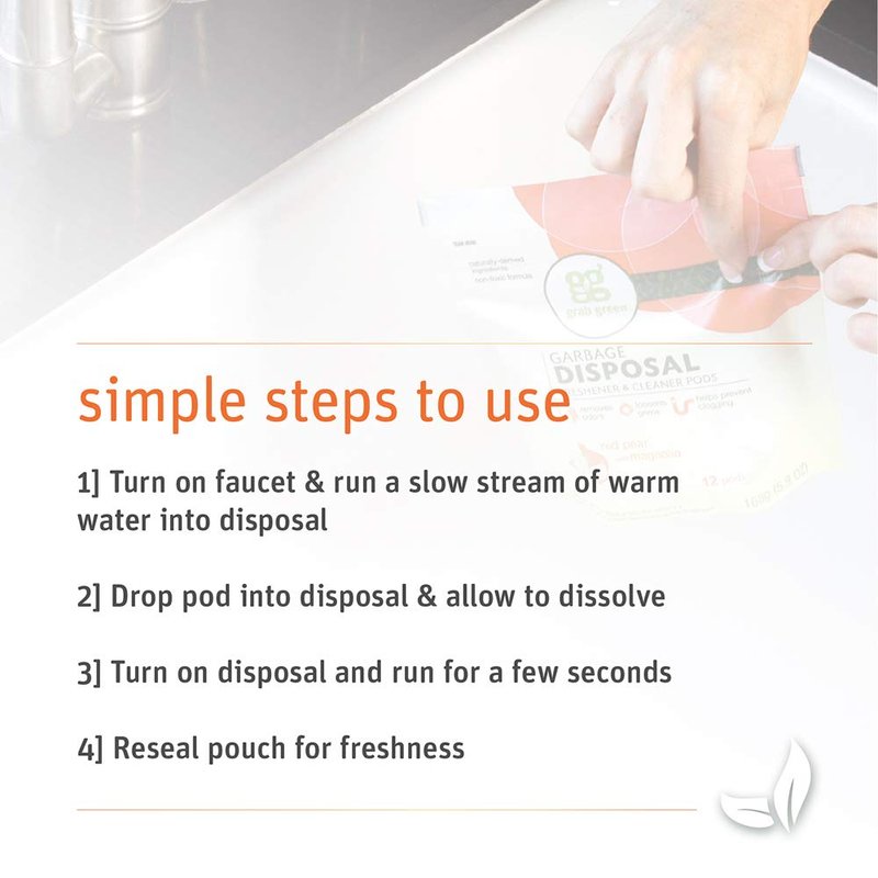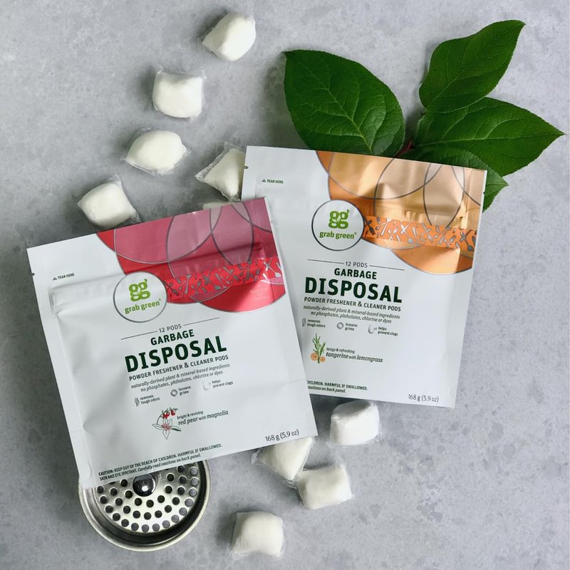 - Contains 4-12 pod pouches of Grab Green Garbage Disposal Freshener & Cleaner Pods, Tangerine + Lemongrass.