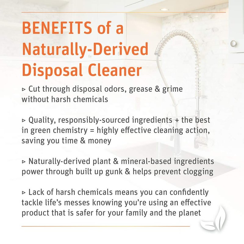 - THE SIMPLEST DISPOSAL SOLUTION to tackle odors, loosen grime and prevent clogging WITHOUT harsh chemicals or noxious fumes or caustic chemicals.