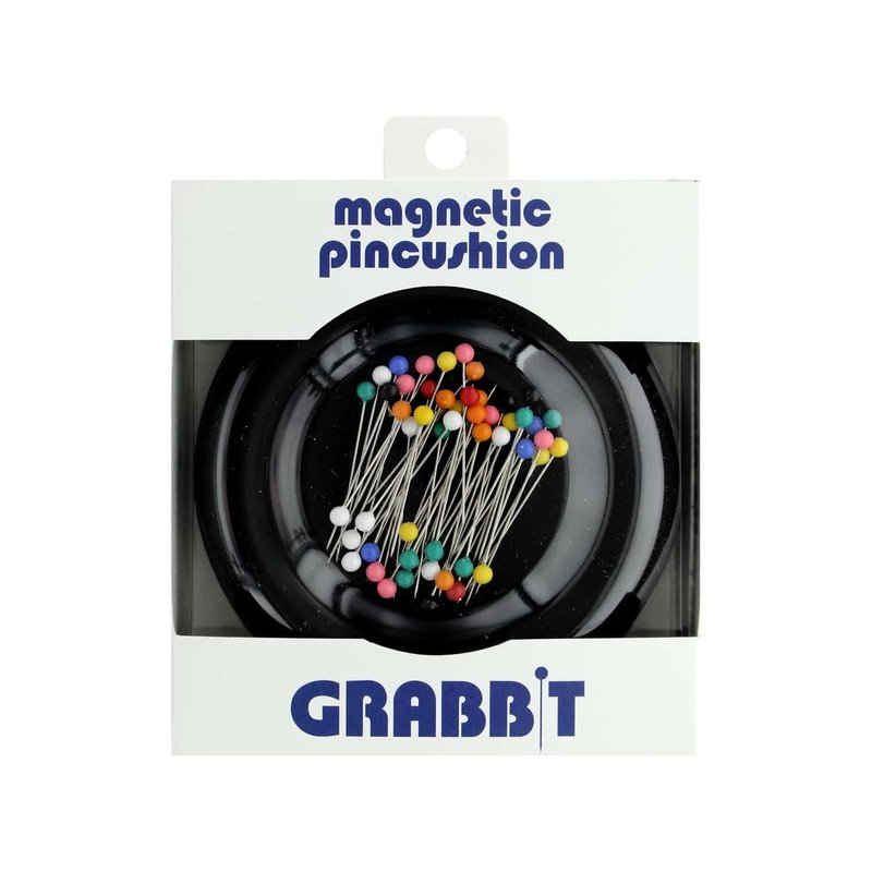 Grabbit Magnetic Sewing Pincushion with 50 Plastic Head Pins, Black
