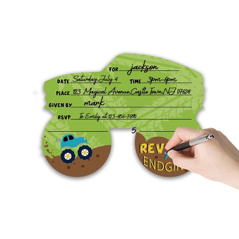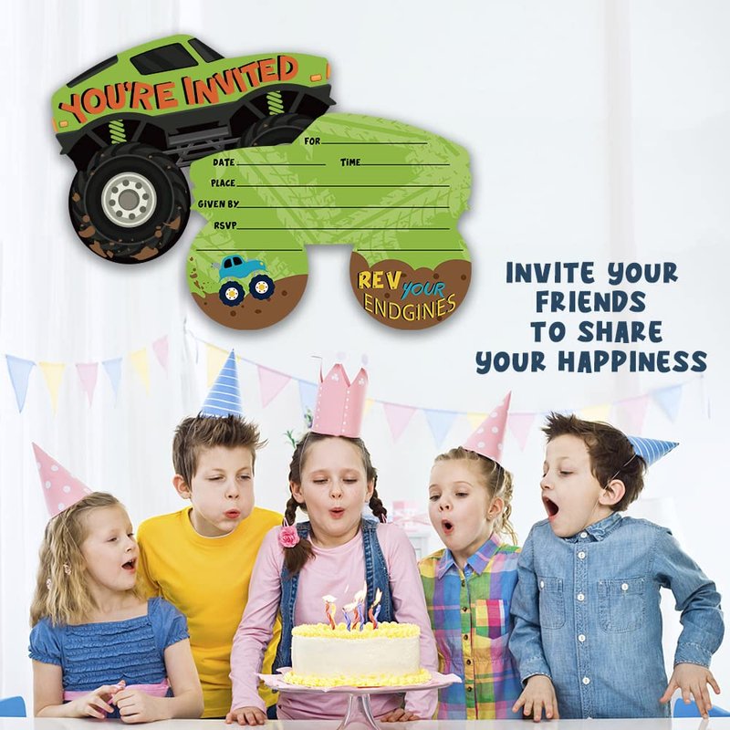 Grace Yonks Truck Bash Invitation, Truck Birthday Invites, 20 Invitations and Envelopes, Birthday party Invitations, Birthday Party Supplies.(088)