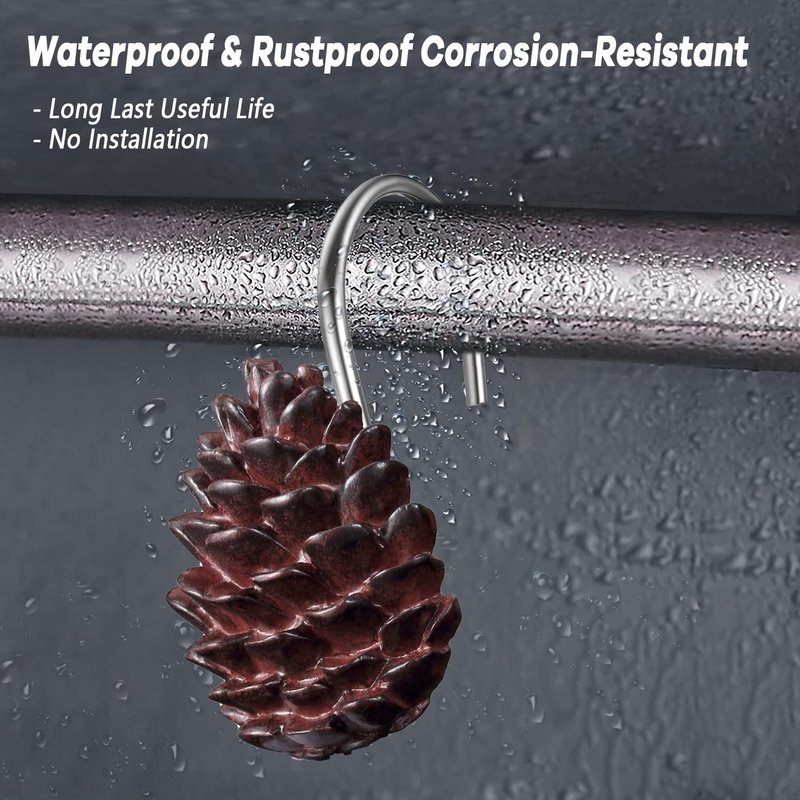 Gracelife Set of 12 Pinecone Shower Curtain Hooks Bathroom Rolling Hangers Curtain Sliding Hooks Resin Pothook