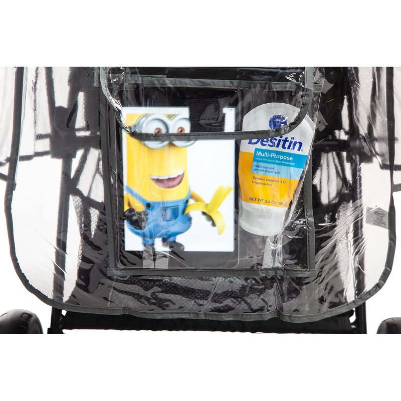 - UNIVERSAL SIZE: This universal stroller rain cover fits most travel systems makes and models. For added convenience, our umbrella stroller rain cover is also equipped with a storage pocket for baby essentials, smartphone and cash.
