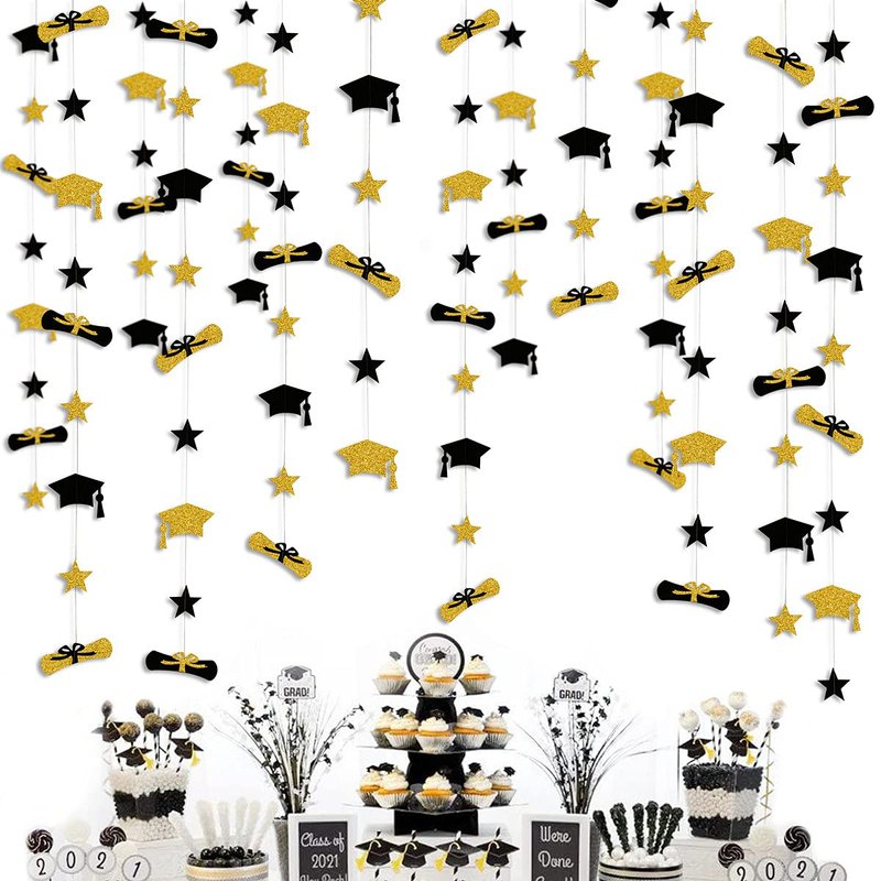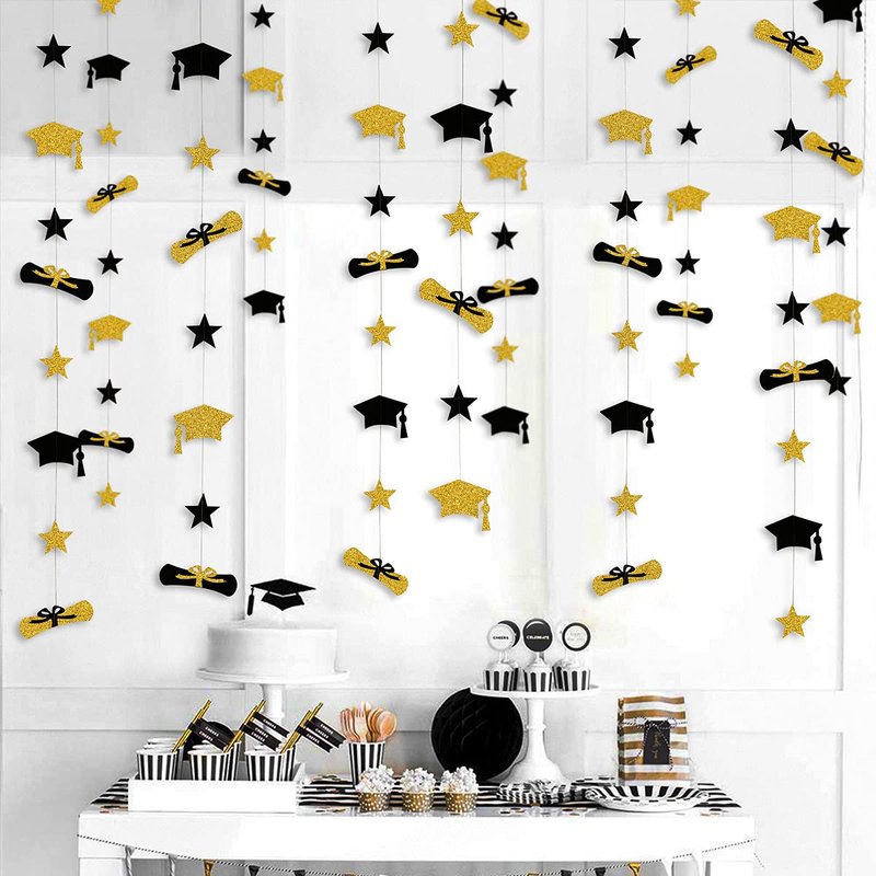 Our black gold graduation hat diploma star party banner garland decorations will perfectly meet your demand.