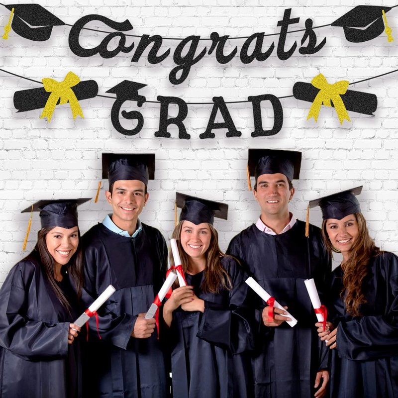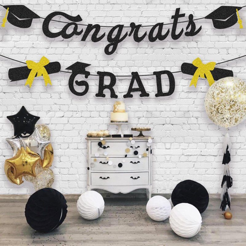 - REUSABLE and EASY TO KEEP - Eco-friendly glittery cardstock and high quality graduation party supplies, versatile, reusable, definitely a highlight of the graduation ceremony. Graduation party decor, congratulations decorations, congrats banner, even use it next graduation ceremony.