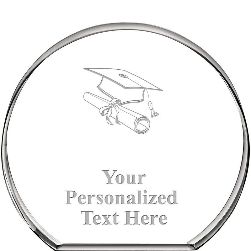 - GRADUATION AWARD: Each Custom Engraved Standing Circle Crystal Paperweight Award Features Beveled Edges And Stands On Its Own Beautifully. Total Size Is 3 3/4"W x 4"H.