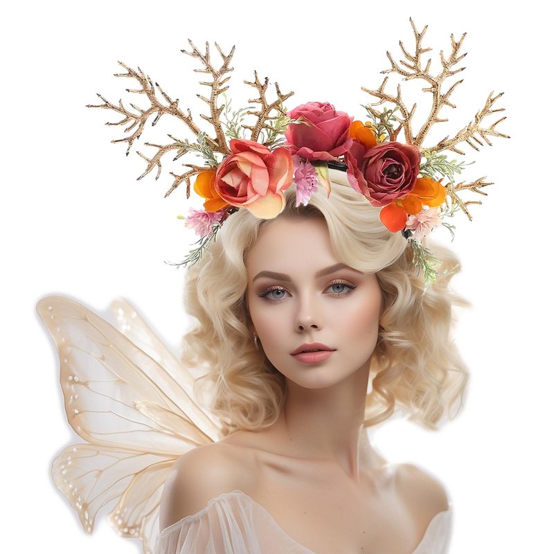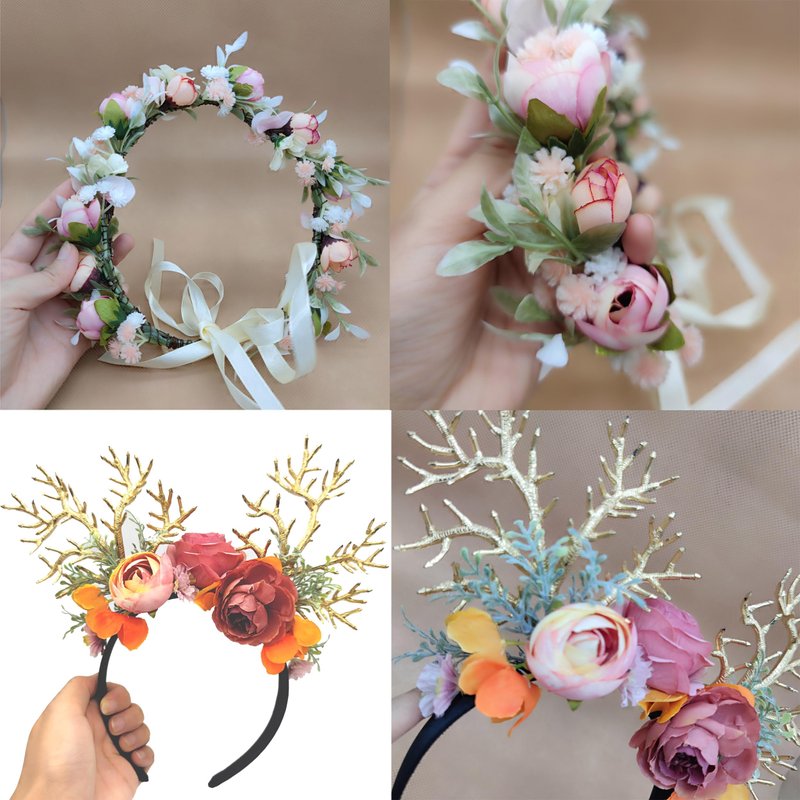 🌺Material: Deer headband and flower crown are made of fabric flowers, satin, elegant, durable and reusable