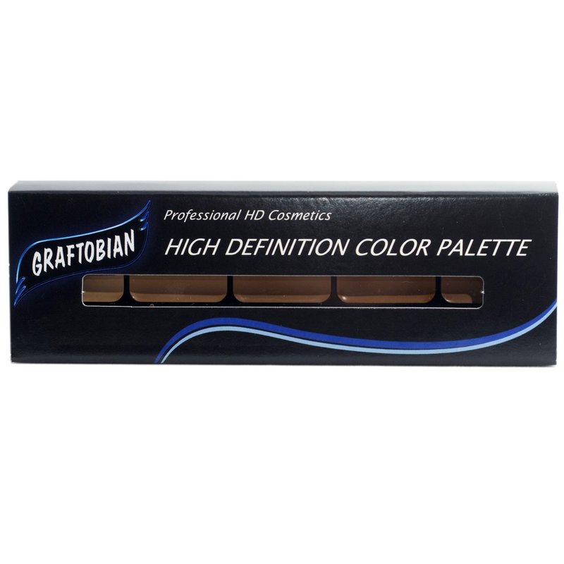 Get professional looking results with the HD Glamour Crème Warm #2 palette, which is ideal for medium skin tones with yellow or warm undertones. Our creme-based formula provides full coverage and is suitable for a wide range of skin types, including mature and textured skin. This contour makeup kit has a high concentration of pigments, giving you a natural, glowing complexion. With five (5) colors at your fingertips, you can create a seamless blend for the perfect look. Designed with Hollywood sets and MUAs in mind, this contour palette is able to handle the scrutiny of High Definition digital cameras, film, and flash photography. Our products do not contain fillers that result in flashback or blotchiness. Our gentle formulation is also noncomedogenic, so it won't clog pores, making it a great option for those with sensitive skin. The lightweight formula spreads into an ultra-fine layer, and works to smooth skintone and cover imperfections. Our Foundations are made in the USA from carefully chosen and high-quality, U.S.-sourced ingredients. They are also free of silicone, and fragrances. Experience flawless, HD results every time with Graftobian's Glamour Crème Foundation Makeup Palettes.