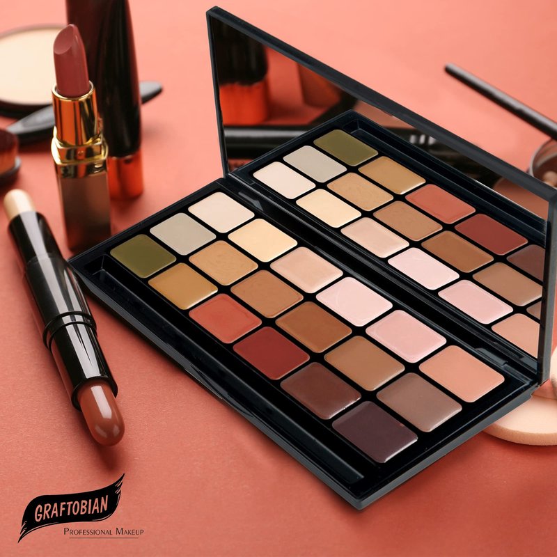 Graftobian Super Palettes are full-coverage foundations with a weightless feel that are suitable for makeup application, contouring, and touch-ups on the go. It comes in 18 colors in each palette, ranging from light to deep in warm, cool, or neutral undertones, and it also includes a free blending sponge. They are designed for both professional makeup artists and makeup lovers. Our Super Palettes have a highly pigmented cream formula that is silicone and fragrance-free. Each makeup palette is USA-made with carefully selected ingredients that are soft, silky, and delicate enough for even the most sensitive skin, providing excellent coverage without drying your skin. Our foundation palettes are quick to apply and blend effortlessly into the skin, resulting in a flawless and even finish in no time. Use alone or with your favorite primer or moisturizer, and easily remove with a cleanser, wipes, or makeup remover.