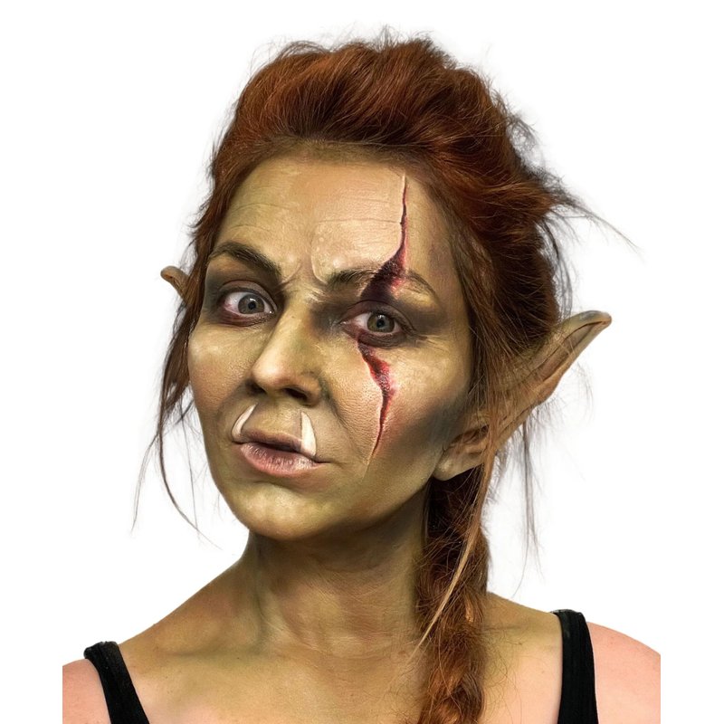 This kit includes 2 orc ears & everything needed to attach and apply your orc ears, and paint a green orc face complete with battle scars, or a realistic evil space alien, imp, goblin, devil, or any other mischievous pointy-eared mythical being.