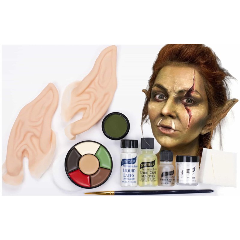 - UPGRADE YOUR COSTUME with this Orc character makeup kit. Kit Includes: 2 Latex Orc Ears, 6 Rubber Mask Grease Shades: Medium Honey, Green, Light Cream, Ebony, Red, and Milk Chocolate, Theatrical Crème in Green, Spirit Gum & Remover, Liquid Latex, Setting Powder, Sponges, Lining Brush, and a Full-Color Instruction Sheet.