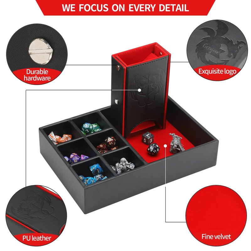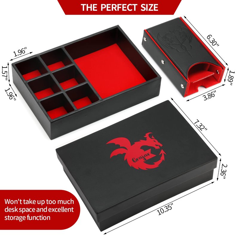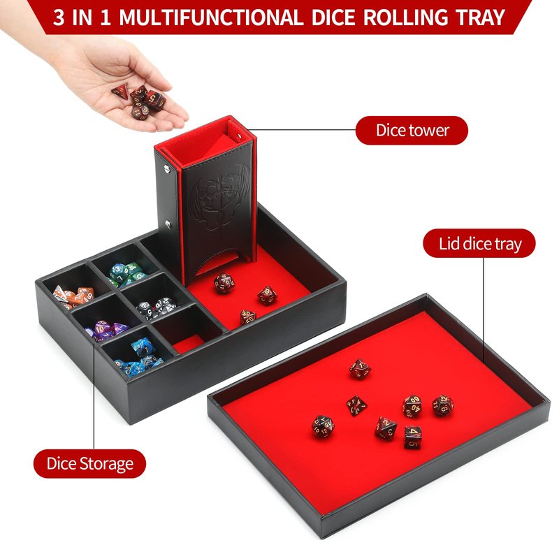 Grajar DND Dice Tray and Dice Tower with storage, 3 in 1 Dice Rolling Tray with Lid, Portable Dice Box Storage, DND dice holder for Dungeons and Dragons D&D RPG MTG Table Games (red)