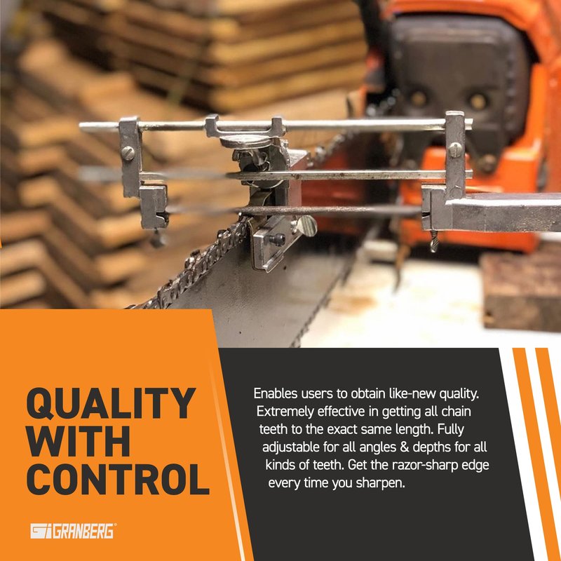 - QUALITY WITH CONTROL - Enalbes user to obtain like-new quality. Extremely effective in getting all chain teeth to the exact same length. Fully adjustable for all angles & depths for all kinds of teeth. Get the razor sharp edge every time you sharpen.