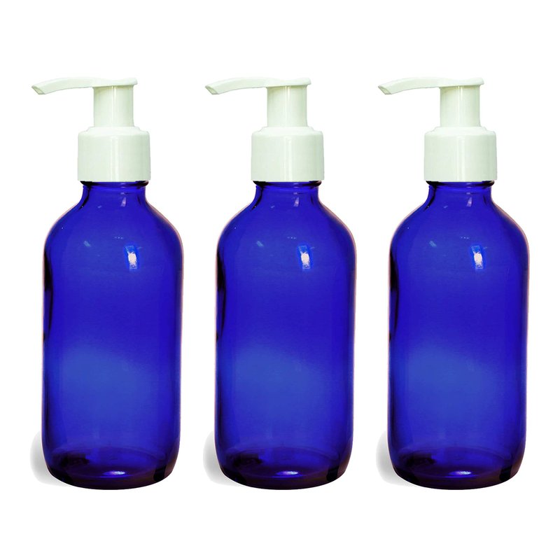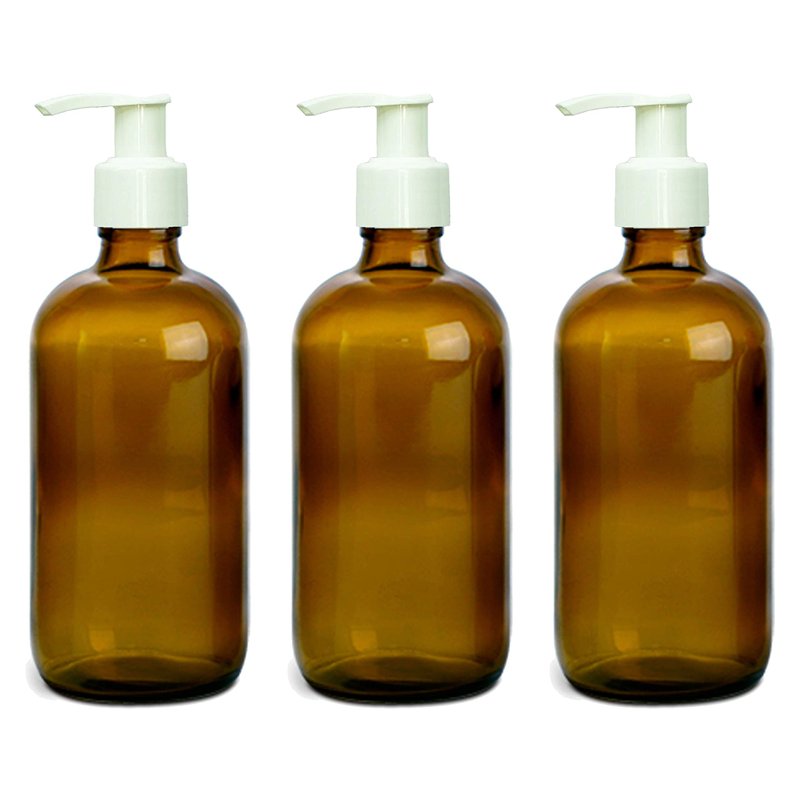 Grand Parfums EMPTY 8 Oz amber Plastic Soap Dispenser Bottles with White Lotion Pumps, for Gel, Soap, Shampoo, Body Lotion, Cream, Refillable (3 Bottles)