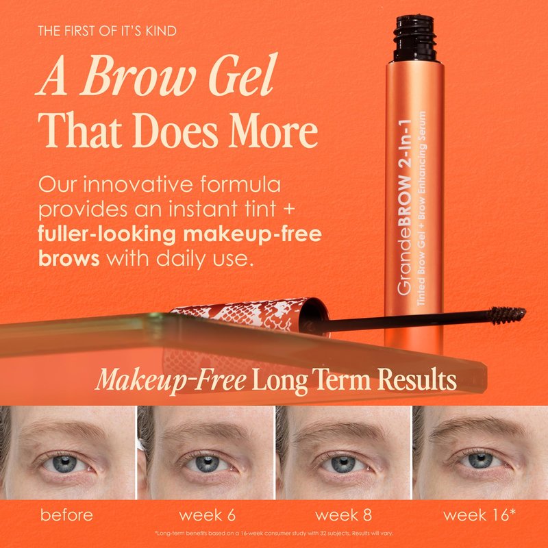 GrandeBROW 2-In-1 Tinted Brow Gel + Brow Enhancing Serum, Taupe