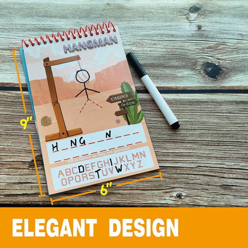 - Including: 2 spiral binding game pads ( 9”X 6”each) with bonus 2 water-based marker. Have fun with these screen free games !!!