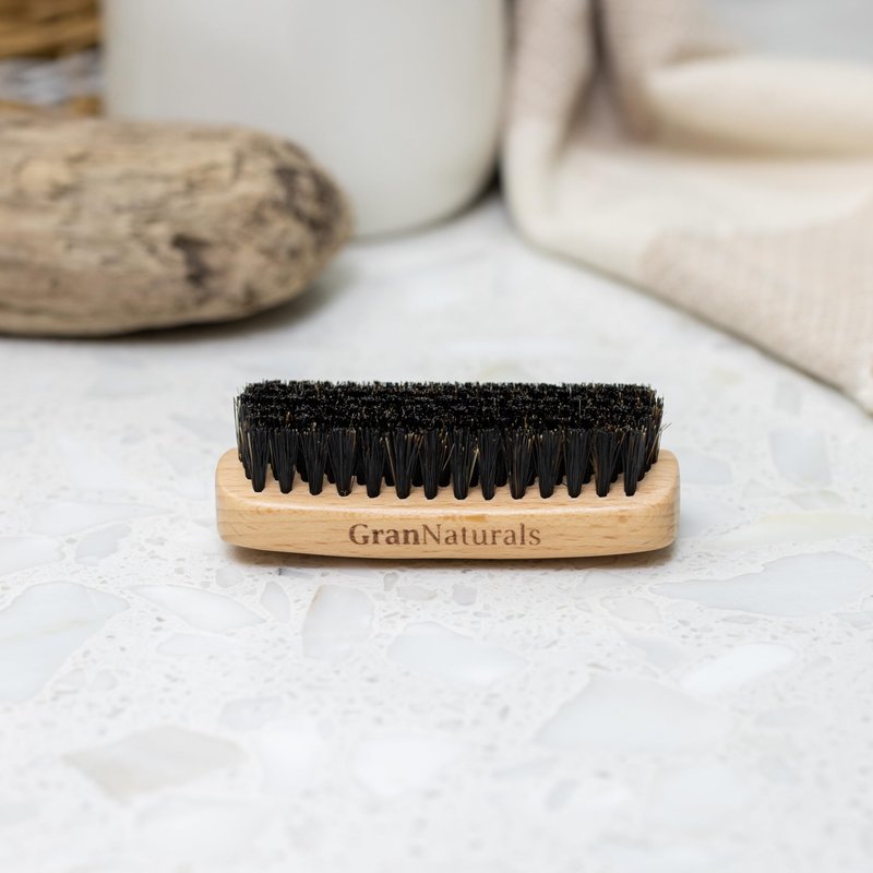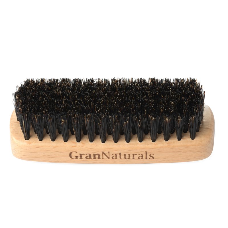 GranNaturals Boar Bristle Slick Back Hair Brush - Palm Size - Soft Medium Smoothing Hairbrush to Style, Polish, & Lay Hair Down Flat to Create a Sleek Frizz Free Hairstyle for Women and Men