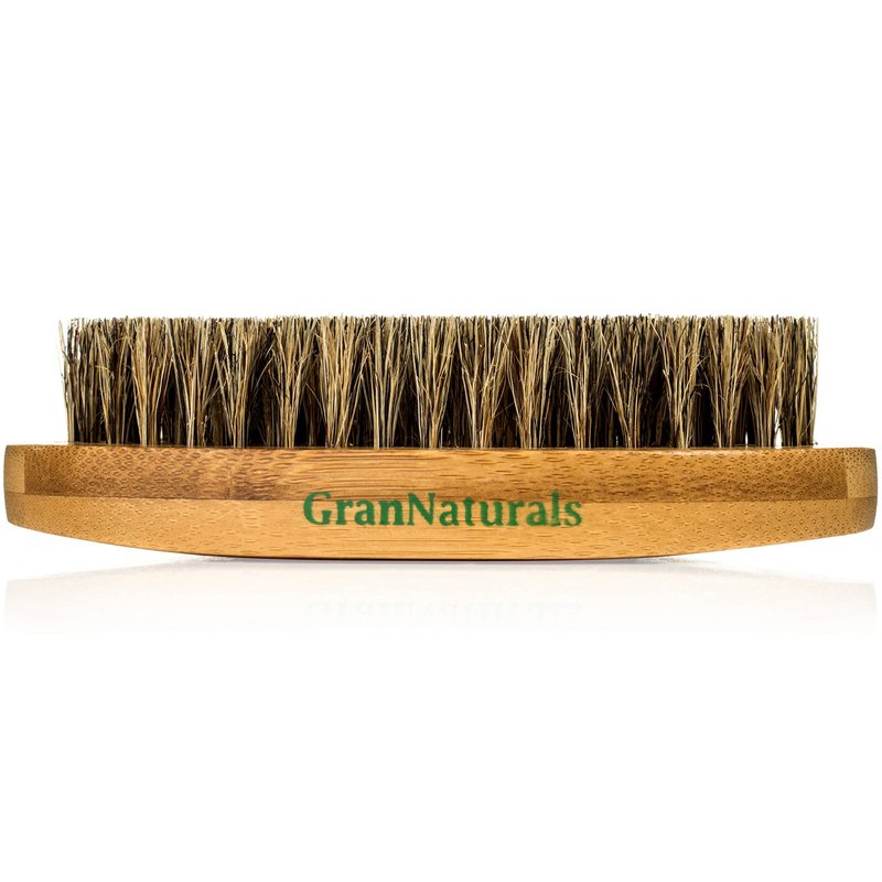 GranNaturals Military Style Boar Bristle Mens Hair Brush for Boys - Palm Size Mens Hairbrush and Beard Brush for Grooming Thin, Fine, Facial and Short Hair - Soft Bristle Slick Back & Smoothing Brush