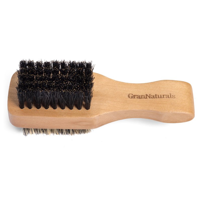 GranNaturals Small Double Sided Boar Bristle Hair Brush for Men - Soft + Medium HairBrush for 360 Waves, Smoothing, Fades, Beards, Barber, Slick Back Hair