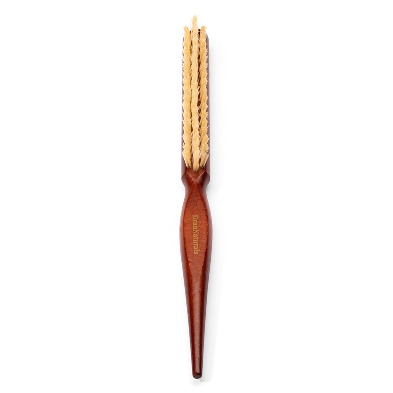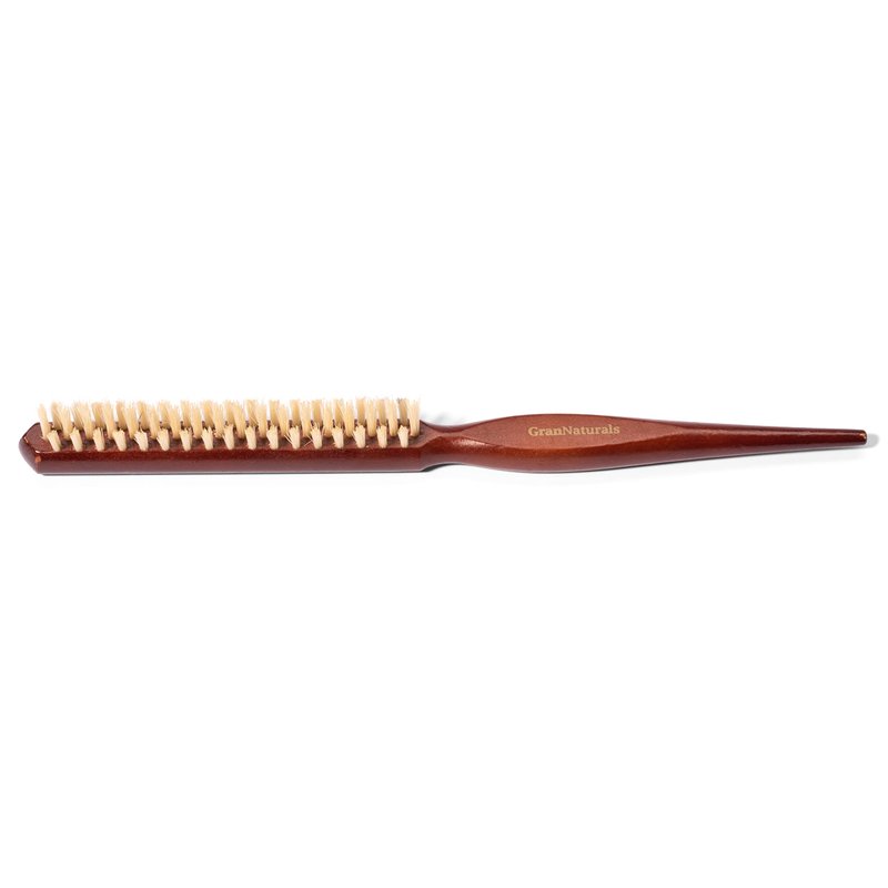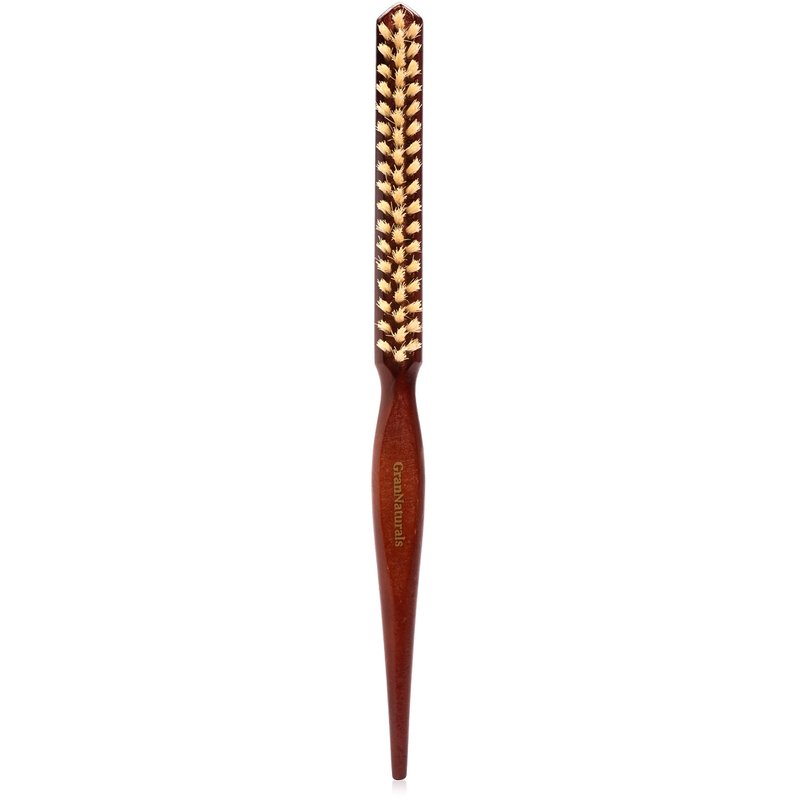 GranNaturals Soft Boar Bristle Teasing Brush for Slick Back Hair, Backcombing, Edge Control, Smoothing Baby Hairs to Create Volume and Sleek Hairstyle - White Bristles - Wooden Rat Tail Comb Handle