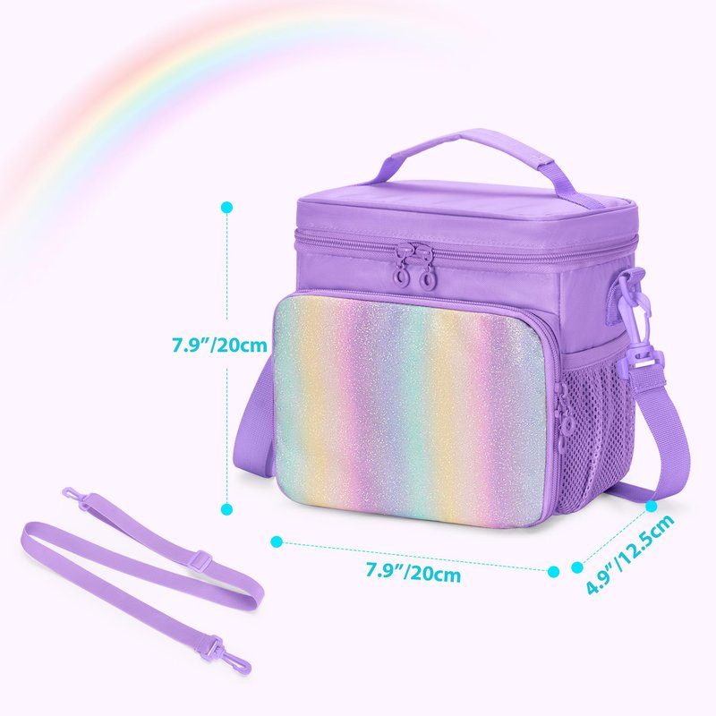 - PATENT DESIGN: There are three colors for you choose; Front pocket of pink and purple are design with rainbow sequins, which is made of polyester material; The storage bag is both practical and beautiful