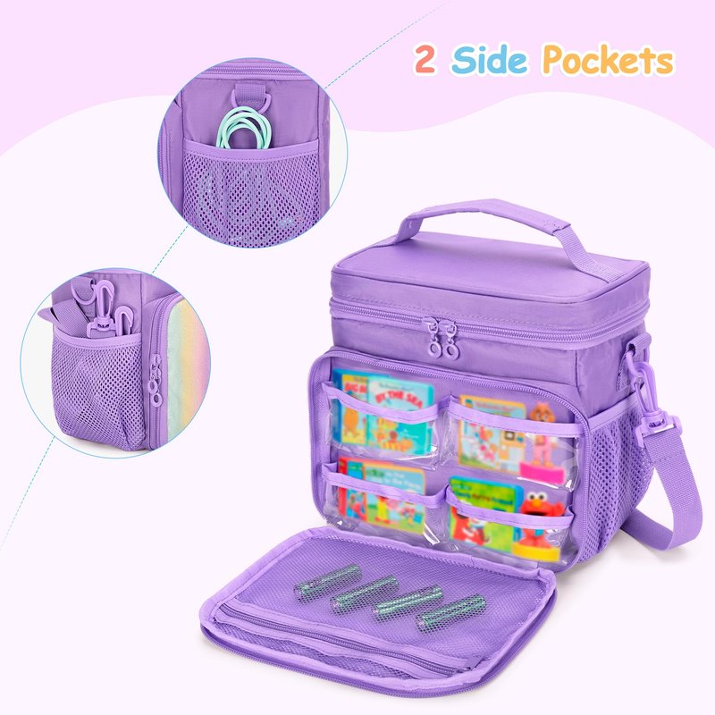 GRAOSO Carrying Case Compatible with Little Tikes Story Dream Machine Books Starter Set, Toy Storage Bag with Handle and Shoulder Strap for Storybook, Character, Accessories, Purple, Bag Only