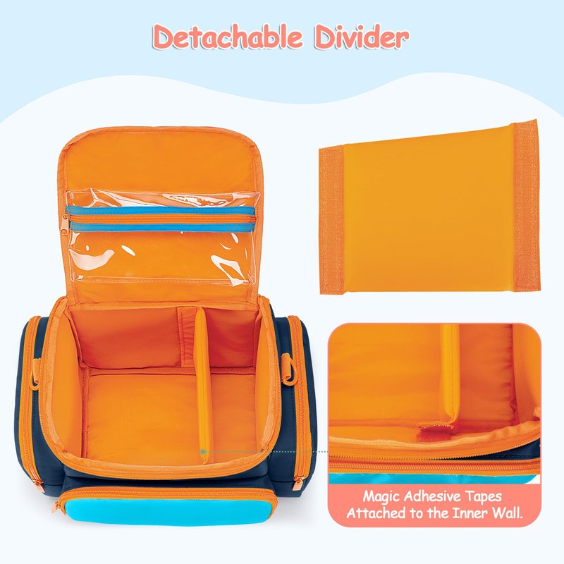 - EXTRA STORAGE POCKETS: Top and front transparent pvc pocket are compatible with Toniebox figures, which can display the figures well; the front mesh zipper pocket can hold charging cable; side pocket hold charging station