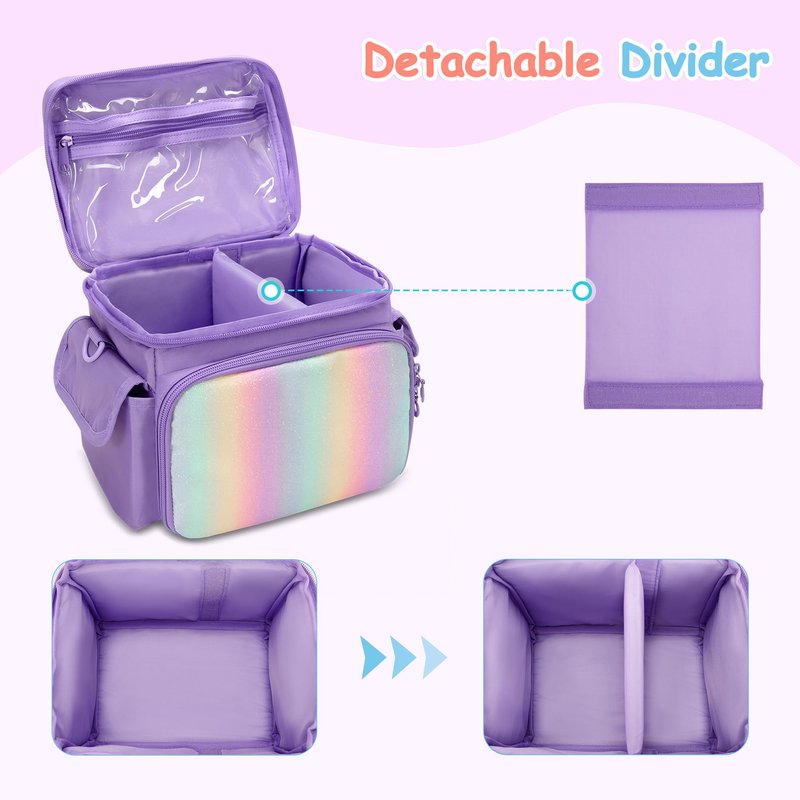 - OCCASION: All three colors are vivid, in particular, the pink and purple front pockets have rainbow sequins. You can choose your loved bag for any occasions, such as bedtime, hiking, travel