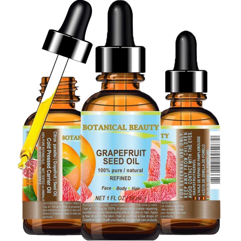 GRAPEFRUIT SEED OIL 100% Pure Natural Undiluted Refined COLD PRESSED CARRIER OIL (Not Essential Oil) 1 Fl.oz.- 30 ml. for Face, Skin, Hair, Lip Care, Nails by Botanical Beauty