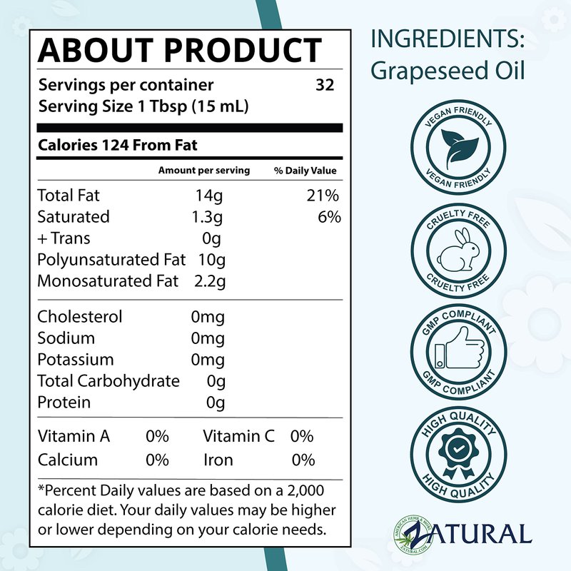 - Versatile Use: Grape seed oil can be used for a variety of purposes, from moisturizing the face and body to conditioning hair and nails. It can also be used as a carrier oil for essential oils or as a base for DIY skincare recipes.