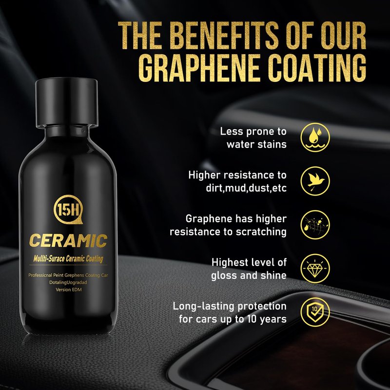 - 【15H hardness Graphene Ceramic Coating】Graphene coating is even easier to apply, features higher scratch and stain resistance while providing professional long-lasting results. Make your motorbikes, cars, boats, or RVs looking clean, shiny, and protected.