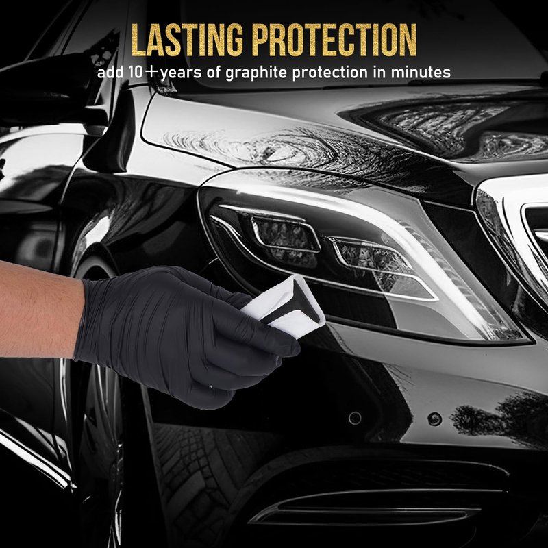 - 【Hydrophobic properties】Graphene Ceramic Coating is a super durable barrier against water, road grime, mud and dirt, has excellent hydrophobicity and smoothness. That will protect your vehicle against extreme weather, environmental contaminants, and scratches and swirls.Providing 15H hardness, more than 10 years of protection even in the harshest conditions.