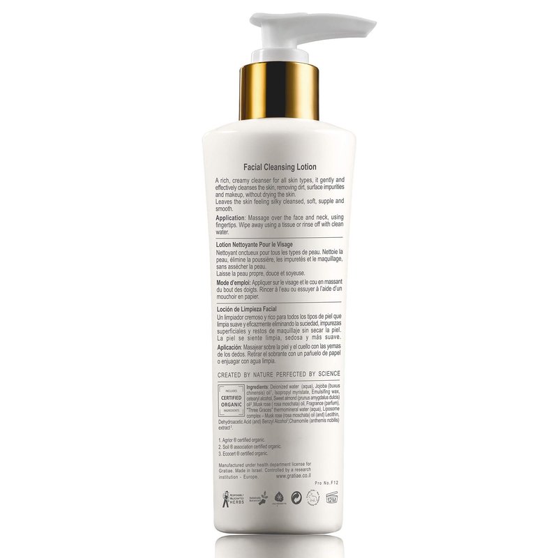 Gratiae Organic facial cleansing lotion, face cleanser, cleansing milk face wash, ultra-hydrating, gentle face cleanser & make-up remover moisturizing hydrating gentle, non-drying deep clean 6.8fl oz