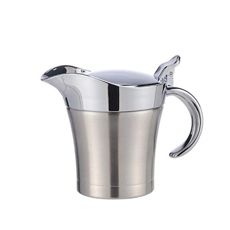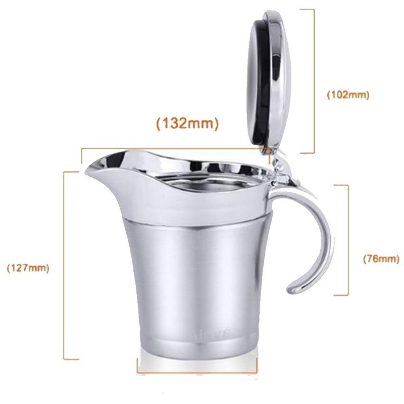 Gravy boat Stainless Steel Insulated Jug with Hinged Lid Ideal for Gravy or Cream at Thanksgiving, Stainless Steel Gravy Boat Sauce (450ML) (silver)