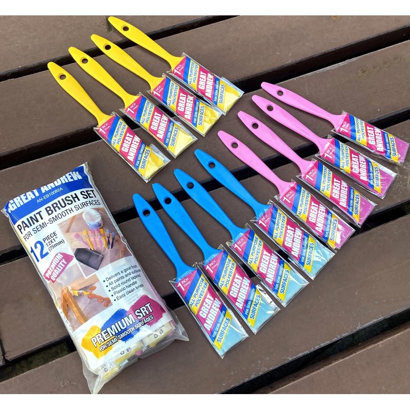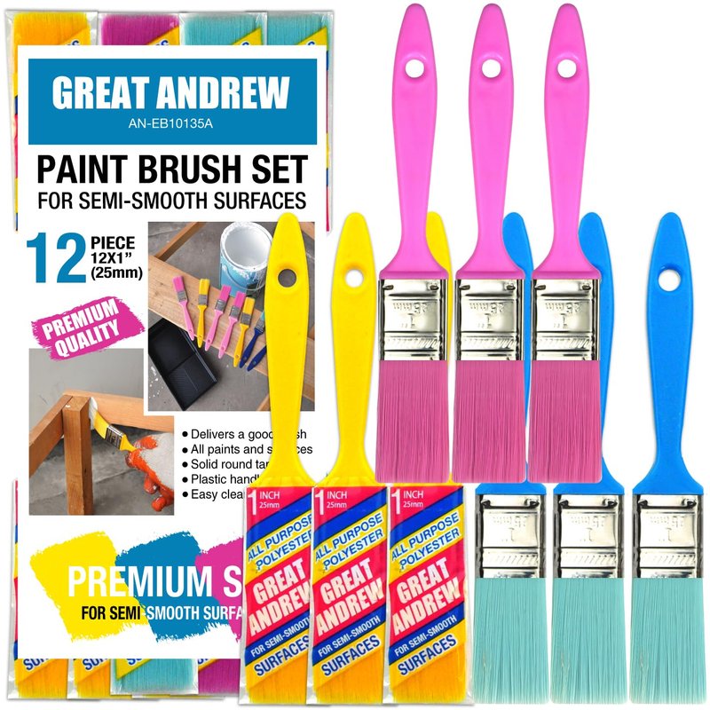 - Great Andrew Small Paint Brush Set includes 12 Pack 1 inch paint brushes with colour bristles and handles, perfect for painting and craft DIY.
