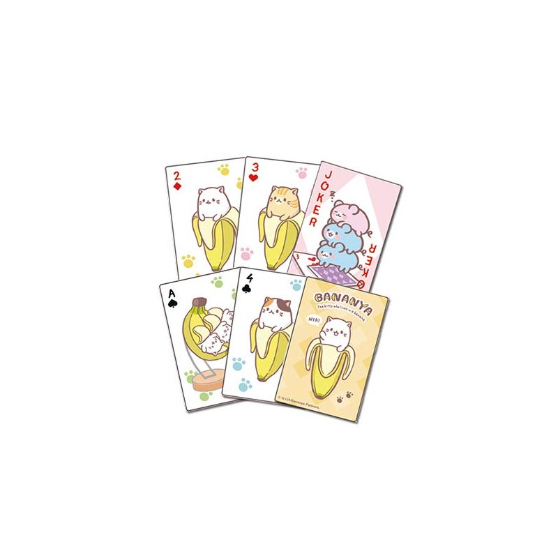 Standard set of 52 playing cards. These playing cards make the perfect gift for any Bananya fan.