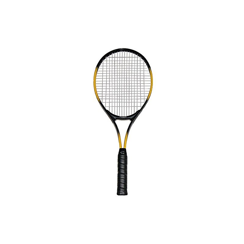 Economical high-quality institutional racket with oversized head, aluminum frame and nylon strings. 27" long. 11.2 oz. 4-3/8" leather grip.