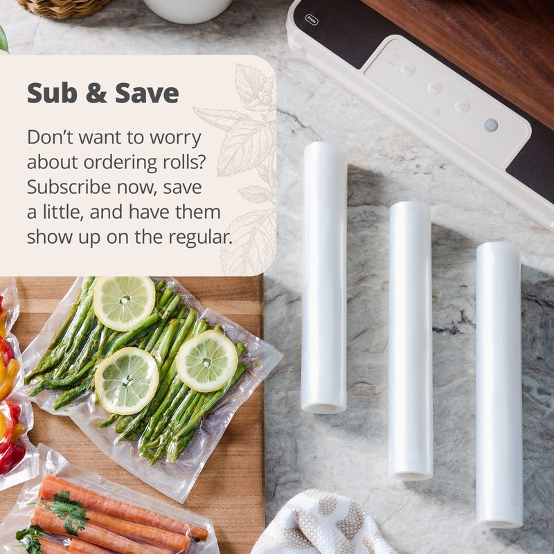 - Pack of 3: Each order comes with 3 rolls, each roll equaling 118 inches worth of sealer bag material, making a grand total of almost 30 feet worth of vacuum sealer bags per order!