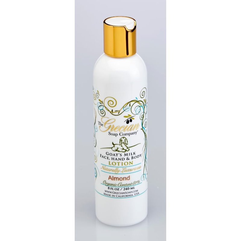 Grecian Organic Goat Milk Lotion for Women Almond Scent - Luxurious, Nourishing & Hydrating, 81% Organic with Aloe, Coconut Oil, Honey